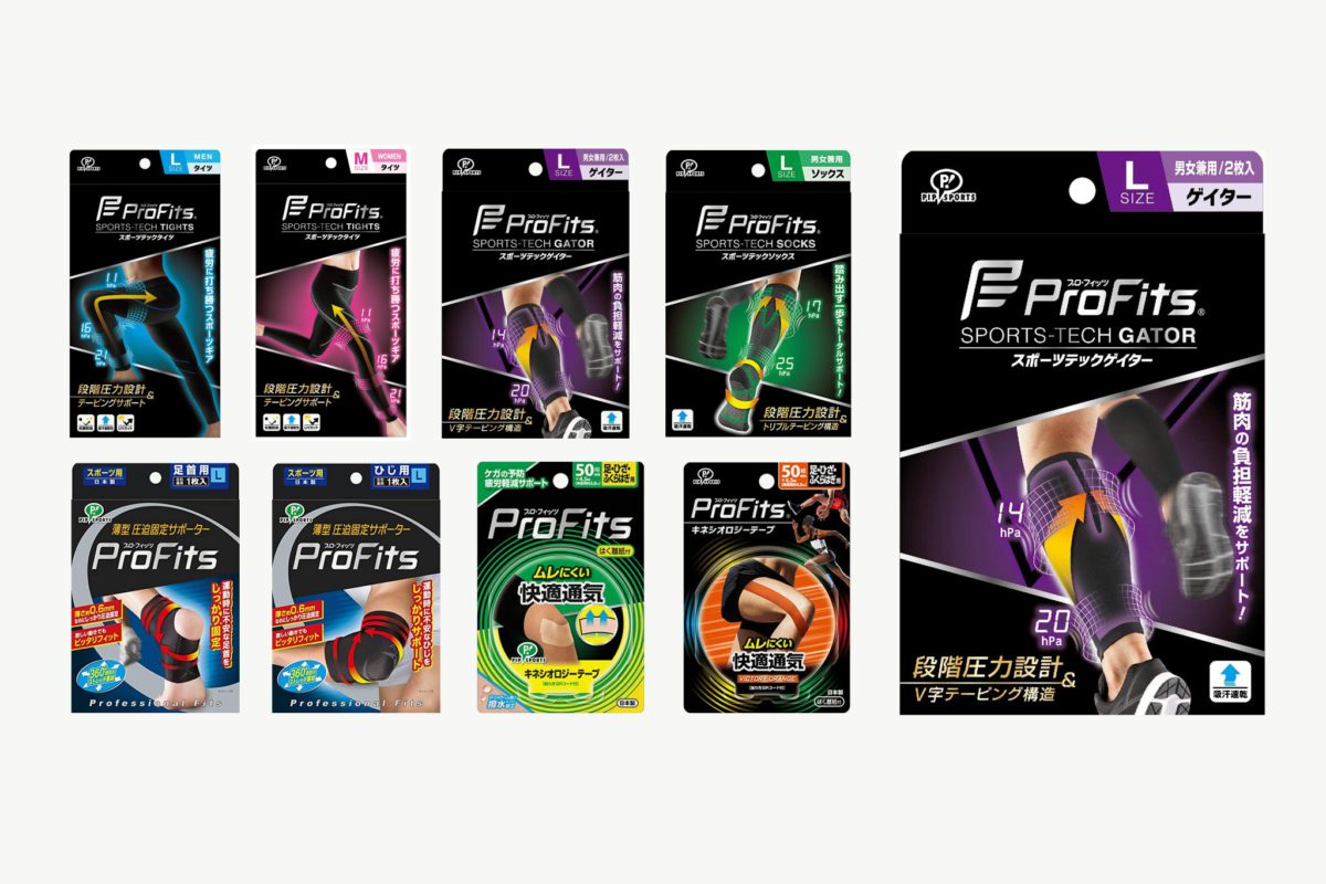 Profitsは、そんな怪我への心配を未然に軽減するテーピングやサポーターなどのケアアイテムを展開するブランドです。