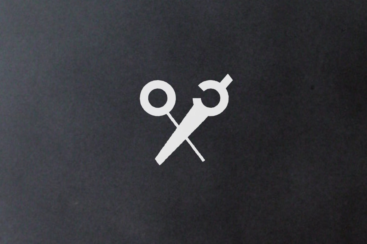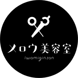 ひと目でヘアサロンと分かるシザーのマークは、店名の「メロウ」の文字で構成。
