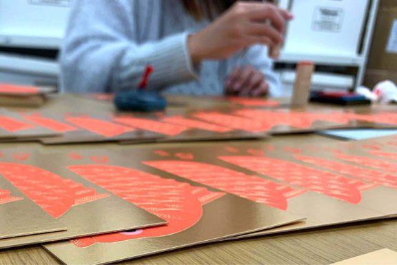 そうそう、金色の特殊紙に赤色の箔押しをしてるに違いないやろぉ〜