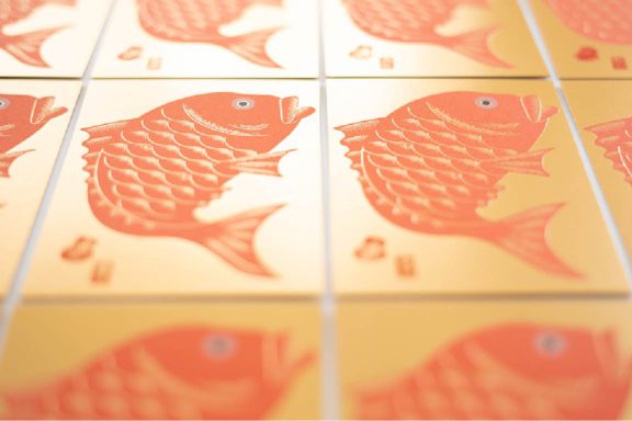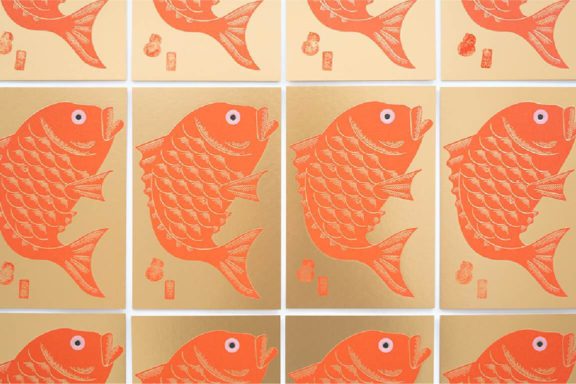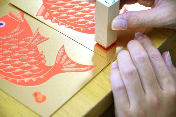 こんなもん簡単ちゃうん!?金の板紙の上に金魚印刷してるんちゃうん?