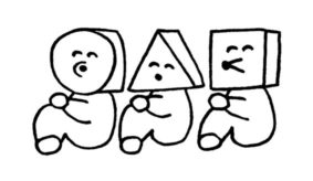 デザイン事務所6Bの隠れキャラ。 デザインの原型・◯△□をモチーフに、イラストレーターのニシワキタダシさんによる3人組。 すべての形・デザインはこの3つの形で成り立っていると言われています。