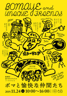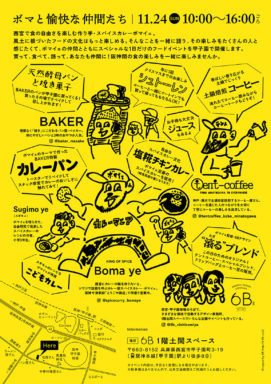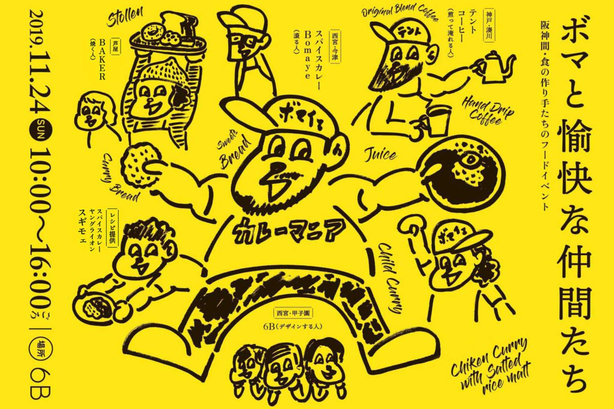 食欲の秋、今回は西宮で食の自由さを楽しむ作り手・スパイスカレーボマイェさんをフューチャー。 そんなボマイェさんの周りの作り手さんと一緒に、食文化の楽しみを一緒に楽しむ1日を開催。 6Bは全体のプロデュースとデザインで応援しました。