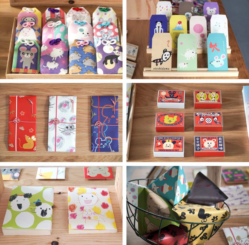 お守り、ポチ袋、祝儀袋、マッチ、ブックカバーなどなど、こどもたちの絵が暮らしに使えるアイテムに。