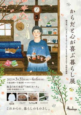 フライヤーのデザインを担当したイベント「こころと体が喜ぶ暮らし展」が、3/31(水)より阪急うめだ本店「うめだスーク」で行われます。 飛騨高山で100年使える家具作りをされる「オークヴィレッジ」さん。 50代からの女性の暮らしを前向きに応援する「ハルメク」さん。 熊笹を練り込んだ和紙でものづくりをされる「SASAWASHI」さん。 石見銀山の暮らしで生まれた衣食住を提案する「石見銀山群言堂」さん。 4社合同の企画イベントです。 いきいきとした暮らしに寄り添う、一生使いたくなるものや食品。 日本の暮らしのために、日本のものづくりで生まれた数々のものに出会えます。 4/7(火)まで。