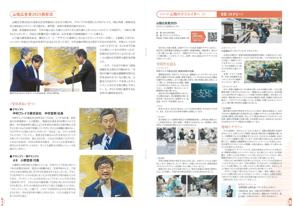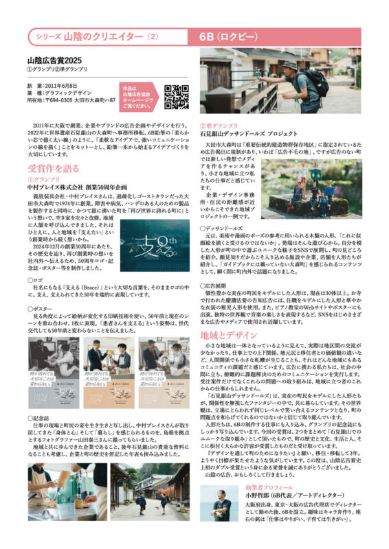 今年受賞した山陰広告賞のグランプリ・準グランプリの作品解説とともに、6Bの考える地域におけるグラフィックデザインの役割について言及しています。