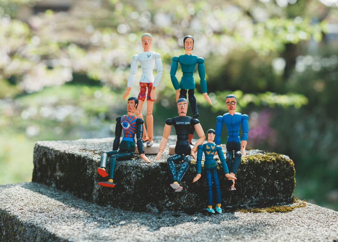 小野が個人的に作り始めた実在の町民を人形にするプロジェクト、「石見銀山デッサンドールズ」は町中の人気コンテンツに。現在60体以上の人形があちこちに出没し、町やお店、イベントの告知をしたり、6Bの制作するデザインに入り込んだりしています。