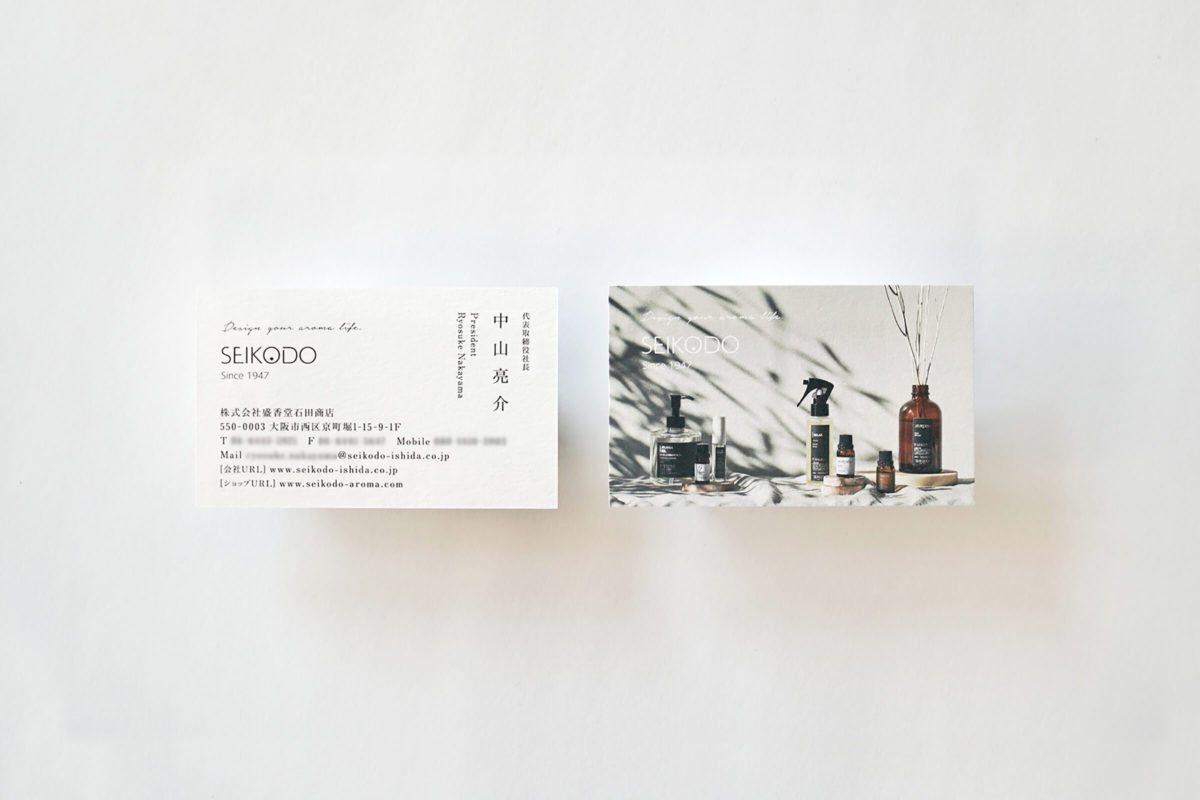 靭公園のそばにあるアロマ専門店・SEIKODOさんの名刺を制作しました。