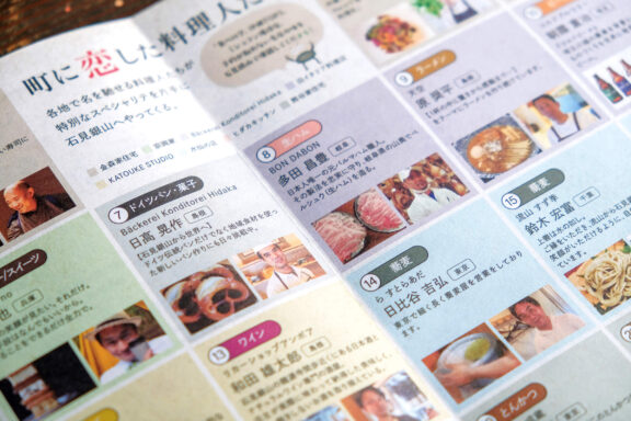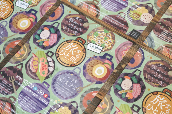 全国各地にいる腕利きの料理人たちが、それぞれの一皿メニューを持って、石見銀山の町・大森町に集うイベントのグラフィックを担当しました。