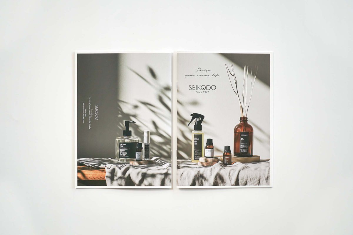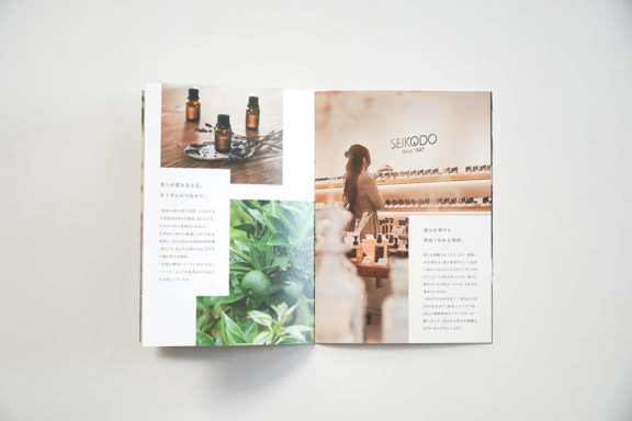 靭公園のそばにあるアロマ専門店・SEIKODOさんのブランドリーフレットを制作しました。