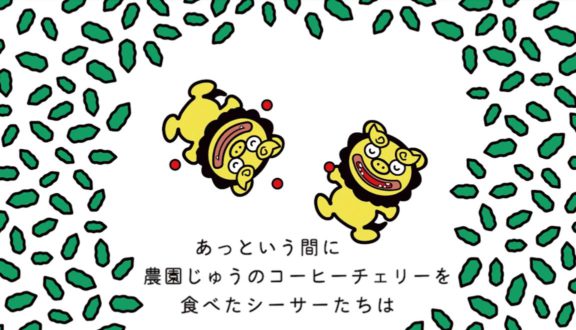 キャラクターのちゅらシーサーが、ひょんなことから薫り高いコーヒー豆を見つけるストーリーです。