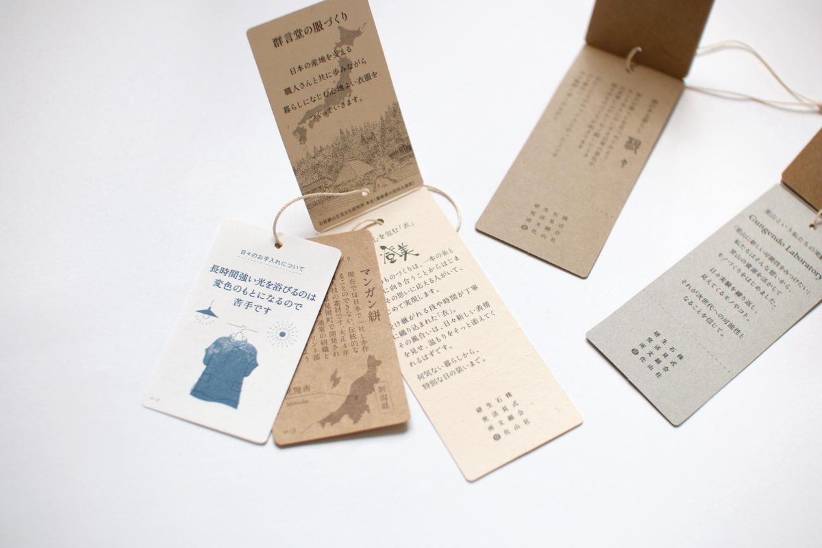 日本各地の職人さんと手を組み、確かな技術でつくられた商品を感じてほしい、という思いから、やさしい風合いの生地を守るお手入れ方法や、産地の情報がわかるタグになりました。