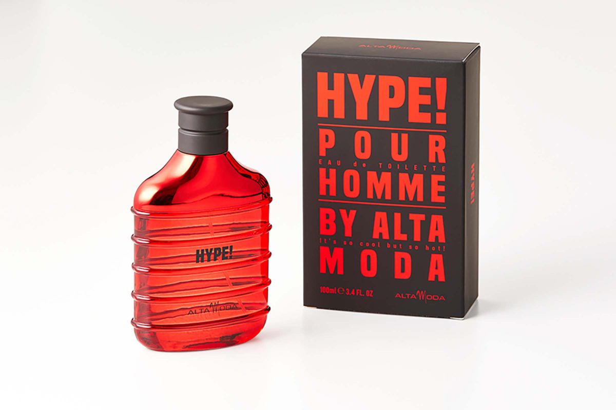 MAKE UPさんのフレグランスシリーズ・ALTA MODAから発売されたオードトワレ「HYPE!(ハイプ!)」のネーミングとパッケージデザインを制作しました。