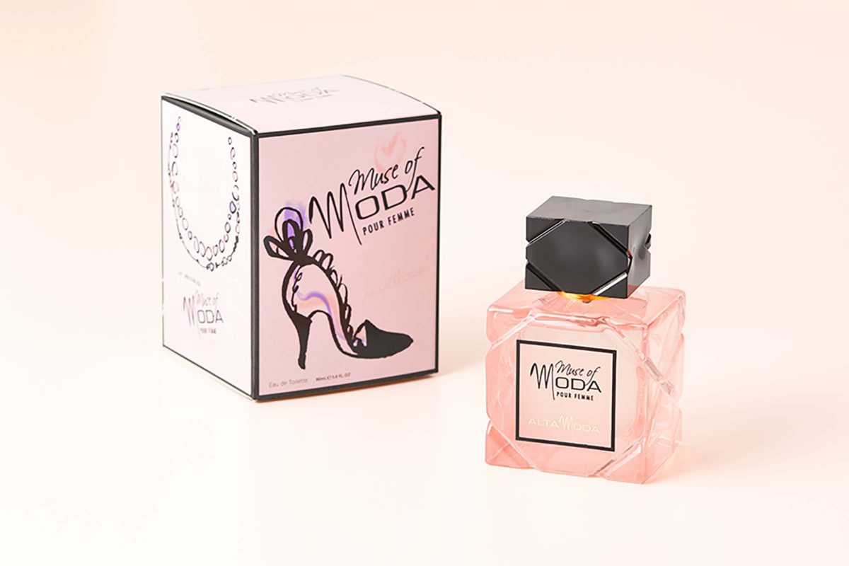 MAKE UPさんのフレグランスシリーズ・ALTA MODAから発売されたオードトワレ「Muse of MODA(ミューズ・オブ・モーダ)」のネーミングとパッケージデザインを制作しました。