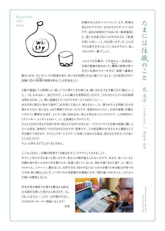 その西性寺の坊守・龍文子さんが長年発行する「坊守通信」のデザインリニューアルを担当。