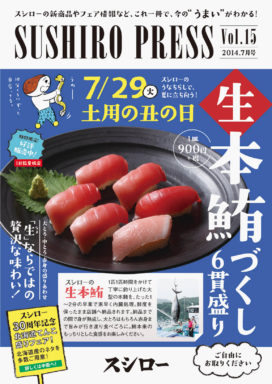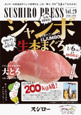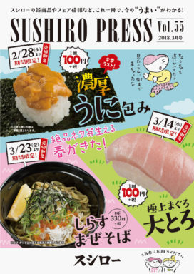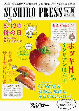 店頭で毎月1回配布している、こだわりを伝える蘊蓄が詰まった、フリーペーパー風フライヤー「SUSHIRO PRESS」の制作を担当しています。