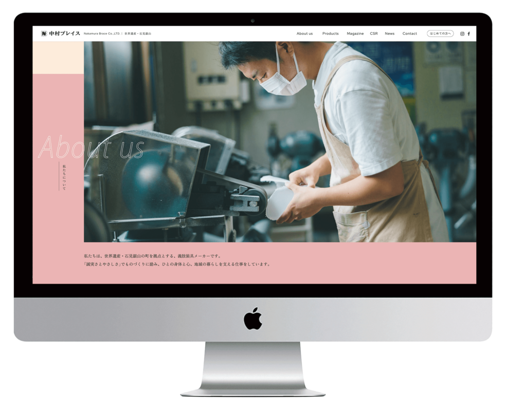 デザインは、これまでの事業の積み重ねてきた誠実さや優しさ、そして石見銀山のロケーションにも合ったものでないといけないと考えていて、遊びすぎず誠実で、でも都会の企業にも負けないサービスを提供するクオリティ感を、中村ブレイスさんらしいトーン&マナーで制作しました。