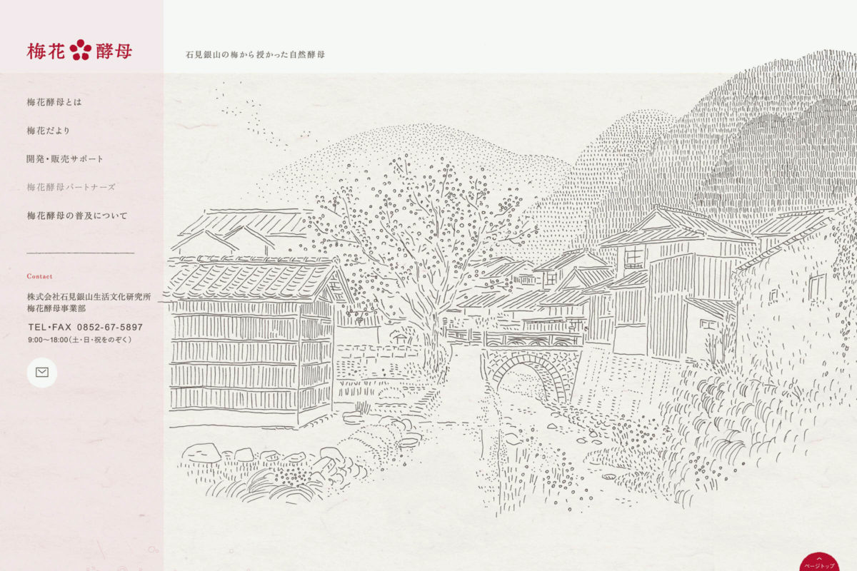 そんな、新しい島根県の資源となるべく、梅花酵母の普及を目的としたWebサイトを制作。梅の花が持つ繊細かつ芯の強さや、酵母のもつ発酵感など感じられるような表現でデザインしています。